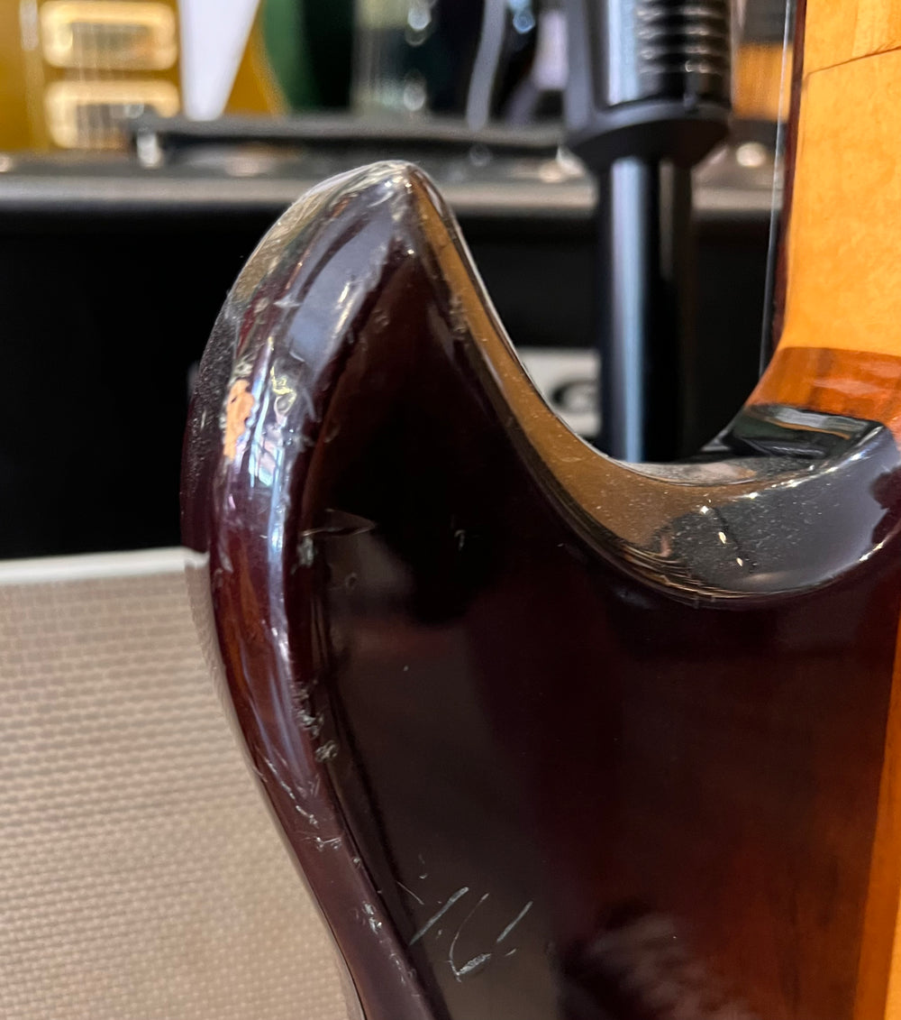 - Body: Ash wings with walnut/maple/walnut laminate center